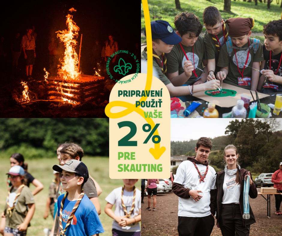 - Vyplňte príslušné údaje o o.z. Slovenskom skautingu, 21.zbore Korčín Zvolenská Slatina a sumu zodpovedajúcu 2% dane do príslušných oddielov v daňovom priznaní.